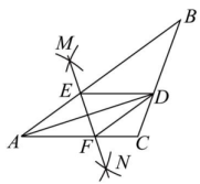12、如图,在△ABC中AD平分∠BAC,按以下步骤作图:第一步分别以点A、D为圆心,以大于AD的长为半径在AD两侧作弧,交于两点M、N;第二步,连接MN分别AB、AC于点E、F;第三步,连接DE、DF,若BD=6,CD=3,CF=2,则AE的长是( )A、4 B、4.5 C、5 D、5.5