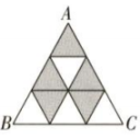 8、如图,等边三角形ABC是由9个大小相等的等边三角形构成,随机地往△ABC内投一粒米,这粒米落在阴影区域的概率为.