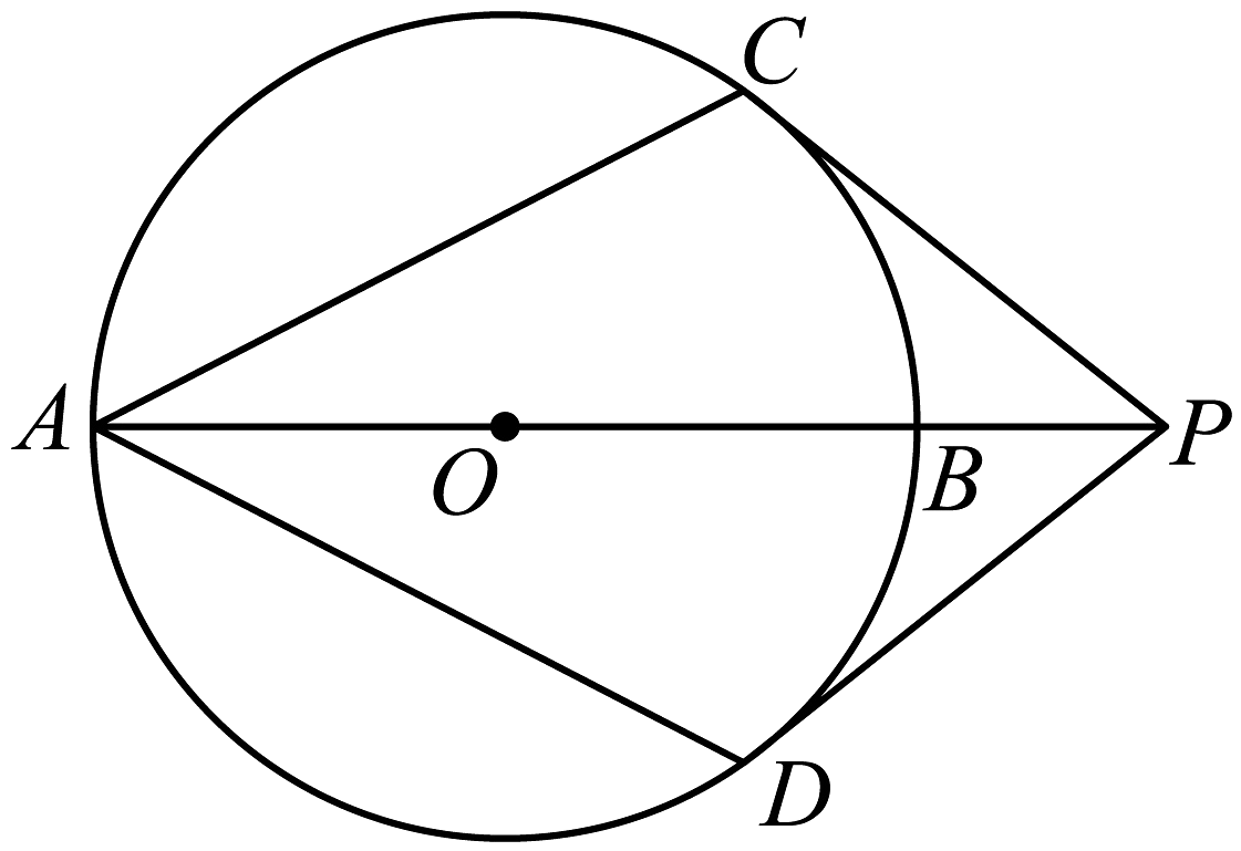 20、如图,为的直径,点在的延长线上, , 与相切,切点分别为C,D.若 , 则等于( )A、 B、 C、 D、