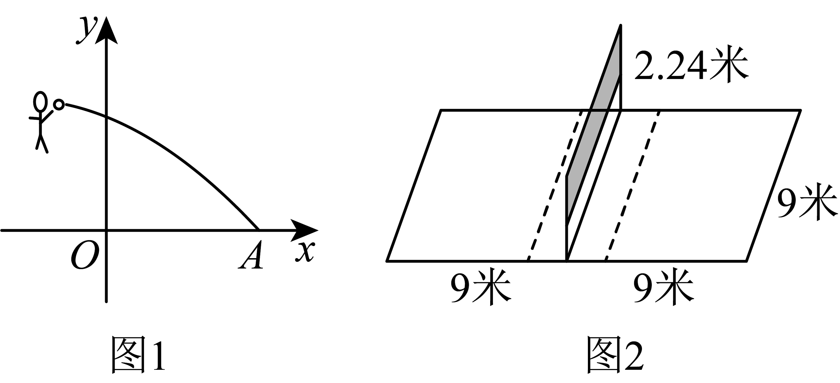 ②如图2所示,排球场地标准:长18米,宽9米,球网高度为2.24米.