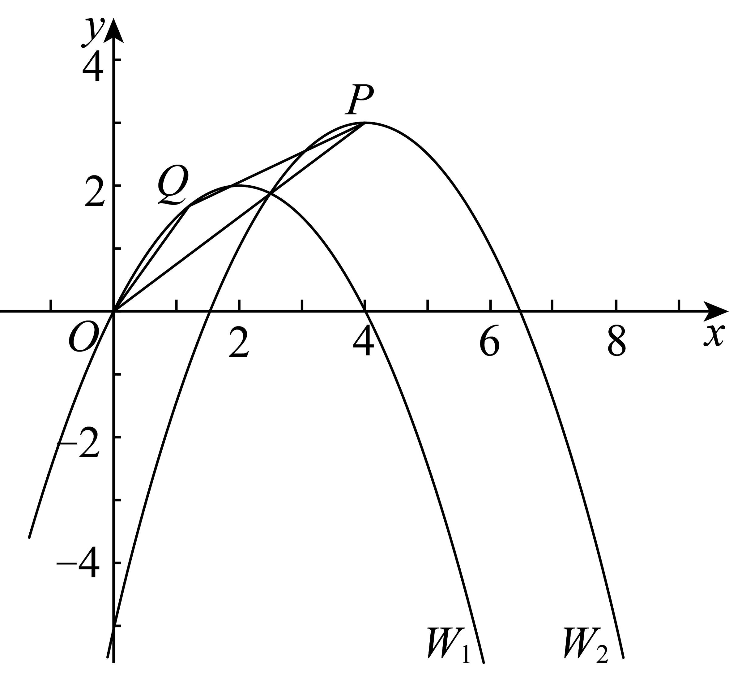 12、已知抛物线解析式为: .(1)、求抛物线的顶点坐标.(2)、将抛物线向右平移2个单位,再向上平移1个单位,得到抛物线 , 求抛物线的解析式.(3)、点Q是直线上方,且又是抛物线图像上的一个动点,连接、 , 是否存在一点Q,使面积最大,若存在,请求出此时点Q的坐标,并求出其最大面积;若不存在,请说明理由.(4)、如图,抛物线的顶点为P,轴上有一动点M,在、这两条抛物线上是否存在点N,使O(原点)、P、M、N四点构成以为一边的平行四边形,若存在,求出N点的坐标;若不存在,请说明理由.