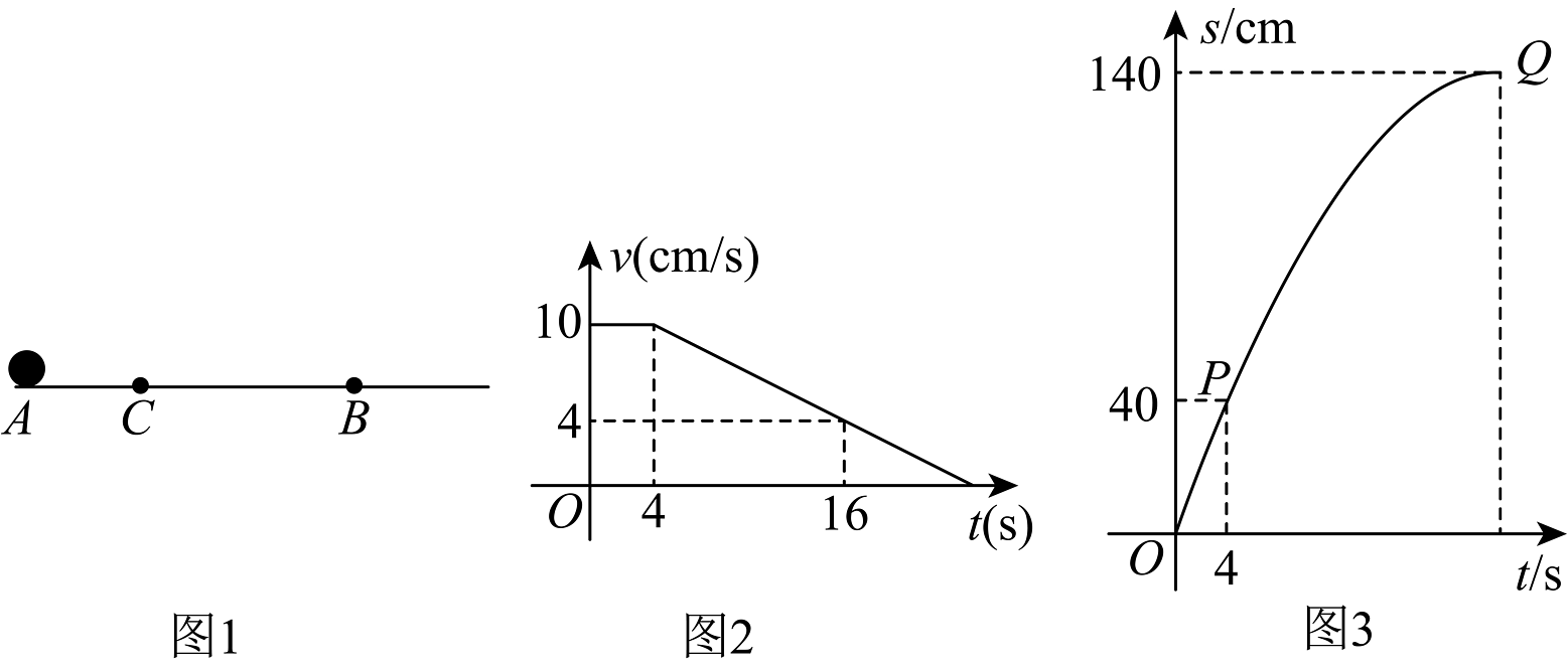 19、如图1,一个小球以的初速度,在一条足够长且平直的轨道上运动.轨道初段绝对光滑;除段外,剩下轨道粗糙.小球在绝对光滑轨道上不存在阻力;在粗糙轨道上,存在恒定的摩擦力,速度会逐渐减小,直至停止.小球运动过程中,其速度与时间之间的关系如图2所示,其路程与时间之间的关系如图3所示(段是抛物线的一部分).(1)、轨道初段的总长为______;并求出小球在粗糙轨道(图中射线上)运动时,与之间的关系式(不要求写出自变量取值范围).(2)、①若测得小球从开始出发到最终停止,行进的总路程为 , 求抛物线的函数关系式.