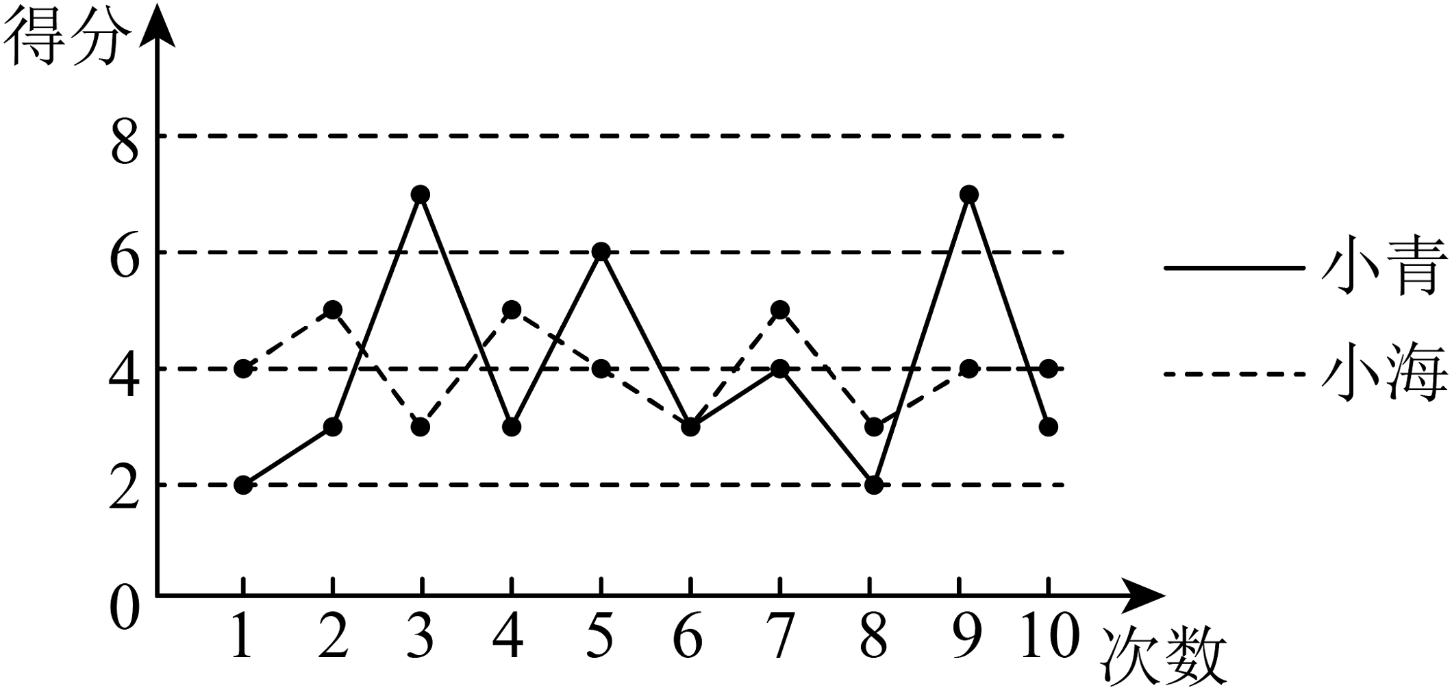 9、为了解学生物理实验操作情况,随机抽取小青和小海两名同学的10次实验得分,并对他们的得分情况从以下两方面整理描述如下: