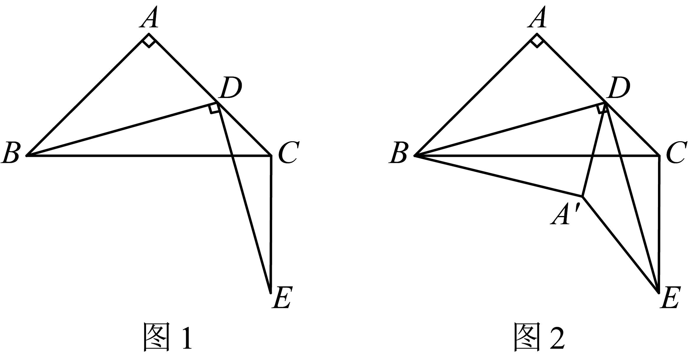 (2)、如图2,将沿翻折,得到 , 连接 , 若的最小值为2,求的长. -