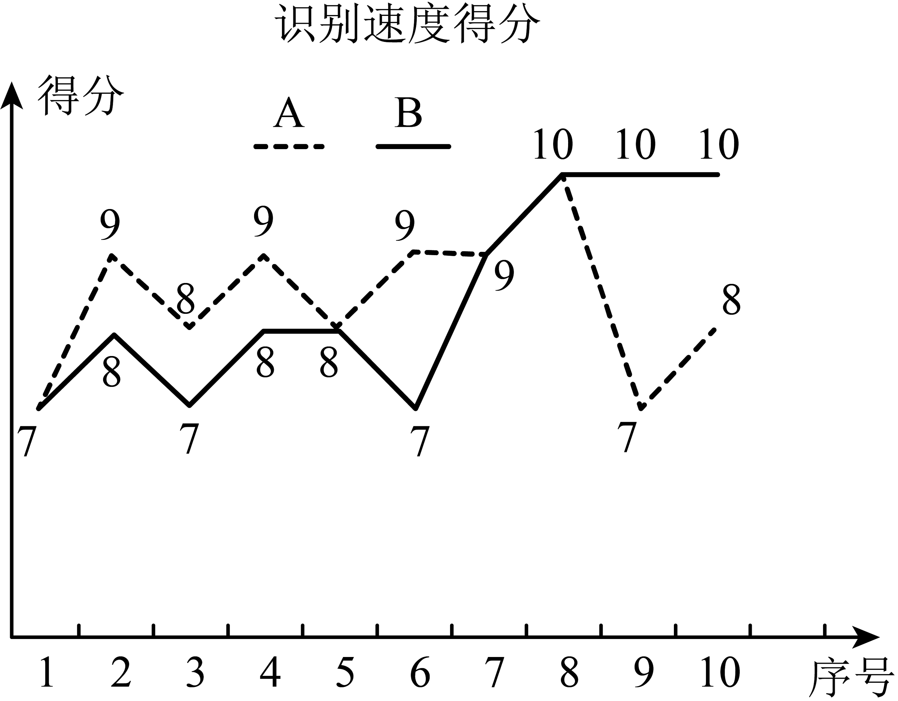 信息二:识别速度得分(如图所示)(满分10分,分值越高表示识别速度越快)