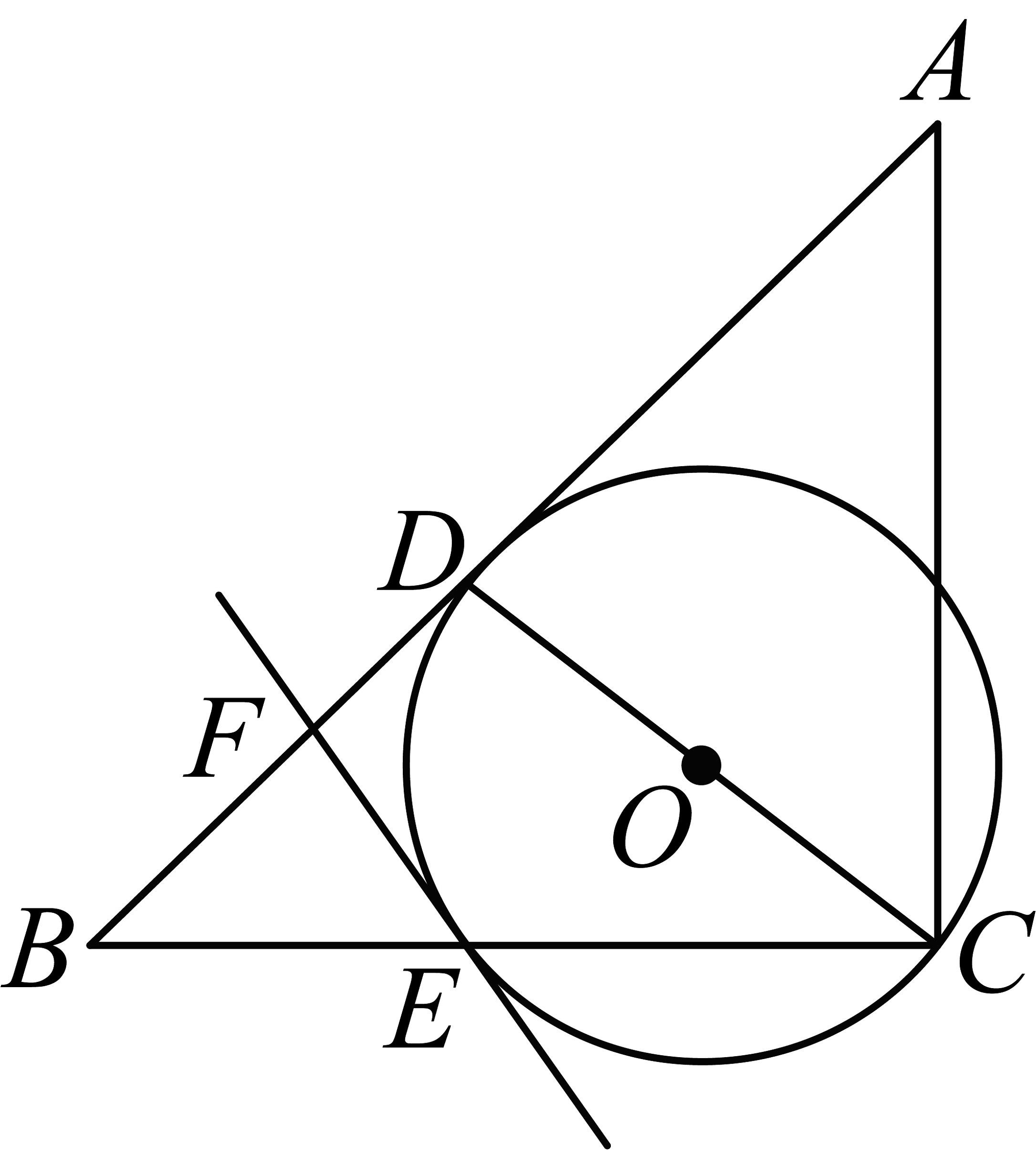 10、如图,是斜边上的中线, 以为直径的与交于E, 过E作的切线与 交于F. .(1)、求直径;(2)、求证:;(3)、若求的长.