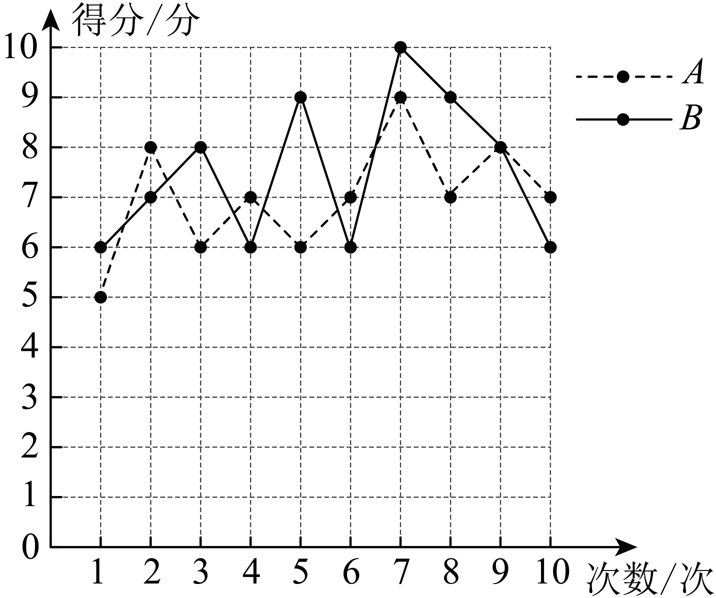 12、人工智能的迅速崛起,极大地提高了人们的工作效率.某公司计划从A,B两个人工智能产品中选择一个使用.该公司对A,B两个人工智能产品的语言交互能力、分析能力和学习能力进行测试(每项测试满分均为10分),每项能力均进行10次测试,取10次测试得分的平均数作为该项的测试成绩.测试结束后,小李将A,B两个人工智能产品的语言交互能力10次测试得分整理成如图折线统计图.