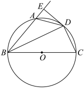 19、 如图,四边形是的内接四边形,是的直径,D为劣弧AC的中点,过点D作的切线DE交BA的延长线于点E , 连接BD.若BE=4AE=4,则的半径为( )A、5 B、 C、2 D、1