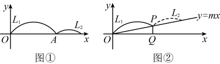 (3)、如图②,为提高训练效果,老师指导小林在可调节坡度的斜坡(近似看作直线)上进行训练,P为斜坡与的交点,在点Q处设置可调节支撑杆,且轴.当 , 且抛物线与抛物线的顶点的纵坐标恰好相等时,直接写出h的取值范围. -