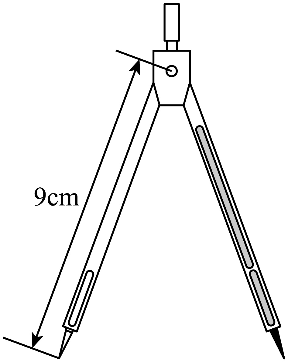 6、如图所示,小华测得一个圆规的一条支脚长为 , 另一只脚长为 , 则该圆规不可能画出圆的半径为( )A、 B、 C、 D、