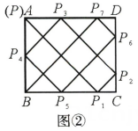 如图①,当母球 P 在AB 边上(不包括点A,B),先撞击BC边,反射到CD边,再反射到AD 边,最后回到出发点,问:母球 P 的初始路线应该满足什么条件?(3)、如图②,给出一张长、宽分别为a, 的台球桌,母球 P从桌的一个角落,以45°角击出,在桌子边缘回弹若干次后,最终必将落入角落的一个球袋.问:球落入球袋前,在桌子边缘回弹多少次? -