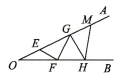 8、如图,AOB 是一钢架,且∠AOB=10°,为使钢架更加坚固,需在其内部添加一些钢管EF,FG,GH……添加的钢管长度都与OE 相等,则最多能添加这样的钢管根.