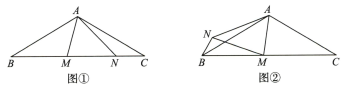 3、已知△ABC中,AB=AC,∠BAC=120°.(1)、如图①,点 M,N 在底边 BC上,且∠ANB=45°,∠MAN=60°.请在图①中AN 上方作出∠NAD=60°,且AD=AM,连接ND,CD,并直接写出 BM与CN的数量关系.(2)、如图②,点M在BC上,点 N在BC的上方,且∠MBN=∠MAN=60°,求证:MC=BN+MN.
