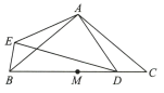 17、如图,△ABC中,AB=AC,∠BAC=α,M 为BC 的中点,点 D 在MC 上,以点A 为中心,将线段AD 顺时针旋转α得到线段AE,连接BE,DE.(1)、比较∠BAE 与∠CAD 的大小;用等式表示线段 BE,BM,MD之间的数量关系,并证明.(2)、过点 M 作AB 的垂线,交 DE 于点N,用等式表示线段 NE 与ND 的数量关系,并证明.
