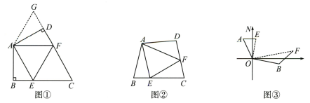 (1)、问题背景 如图①,在四边形ABCD 中,AB=AD,∠BAD=120°,∠B=∠ADC=90°,E,F 分别是BC,CD 上的点,且∠EAF=60°,探究图中线段BE,EF,FD 之间的数量关系.小王同学探究此问题的方法是,延长FD 到点G,使DG=BE,连接AG,先证明△ABE≌△ADG,再证明△AEF≌△AGF,可得出结论.他的结论应是.