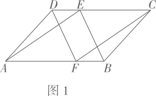 20、在□ABCD中,点E在边CD上,点F在边AB上,连接AE、CF、DF、BE,∠DAE=∠BCF.(1)、如图1,求证:DE=BF;(2)、如图2,设AE交DF于点G,BE交CF于点H,连接GH,若E是边CD的中点,在不添加任何辅助线的情况下,请直接写出图2中以GH为边的所有平行四边形.