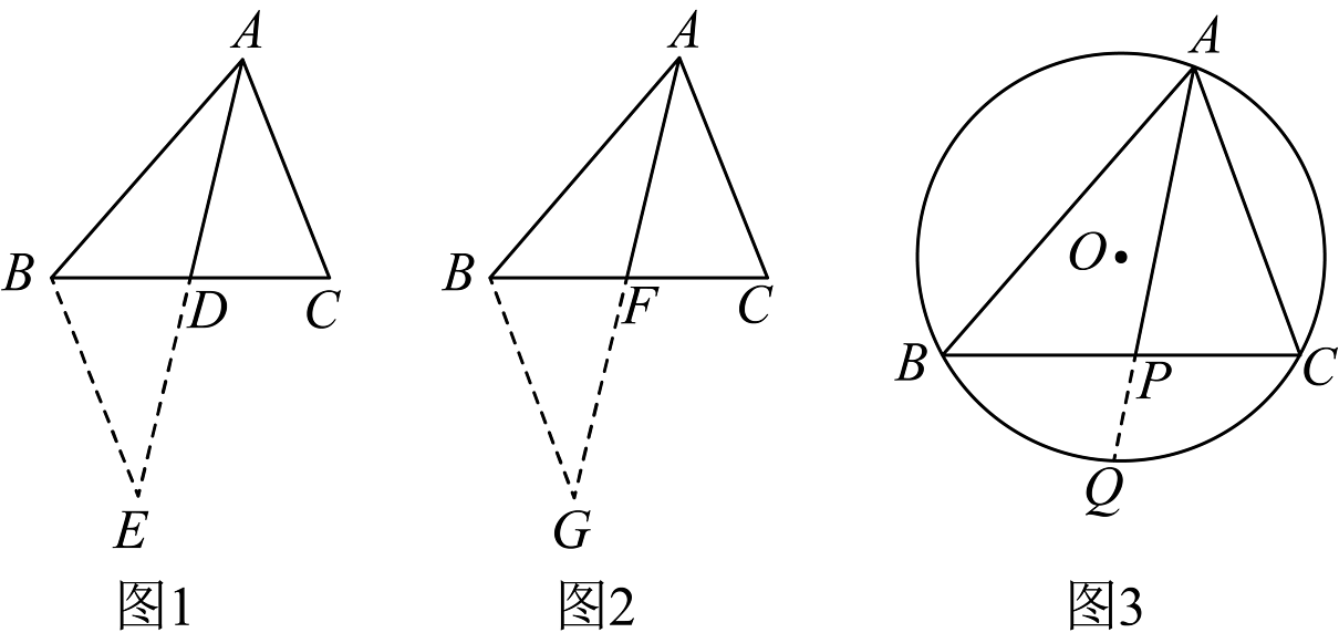 (2)老师看到小明的研究后告诉他,求三角形角平分线还可以借助圆的知识来解决.如图3,作的外接圆 , 的平分线交于点 , 交于点 .