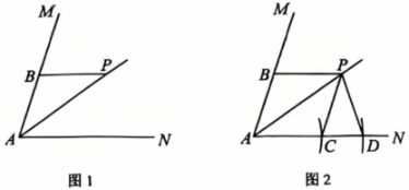小明:如图2,以A为圆心,AP为半径作弧,交AN于点D,连接PD,则是等腰三角形.