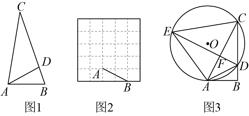 11、我们定义:过三角形的一个顶点的线段将三角形分成两个三角形,其中一个三角形与原三角形相似,且相似比为 , 则原三角形叫做“友好三角形”;(1)、如图1,已知在中, , , 求证:是“友好三角形”;(2)、如图2,在的网格图中,点A、B在格点上,请在图中画出一个符合条件的“友好三角形” , 要求点在格点上;(3)、如图3,在(1)的条件中,作的外接圆 , 点是上的一点, , 连接DE;