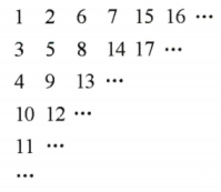 3、将正整数从1开始按如图所示的规律排成一个数阵,其中,2在第一个拐弯处,3在第二个拐弯处,5在第三个拐弯处,7在第四个拐弯处……问:在第2007 个拐弯处的数是多少?