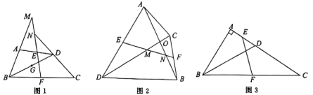 (1)、如图1;在四边形中,分别是的中点,分别延长 , 交于两点,求证: .(2)、如图2,在四边形中,与相交于点分别是的中点,连结 , 分别交 , 于点 , , 判断的形状:(直接写出答案,无需证明).(3)、如图3,在中, , 是上一点,且 , , 分别是 , 的中点,求的长. -
