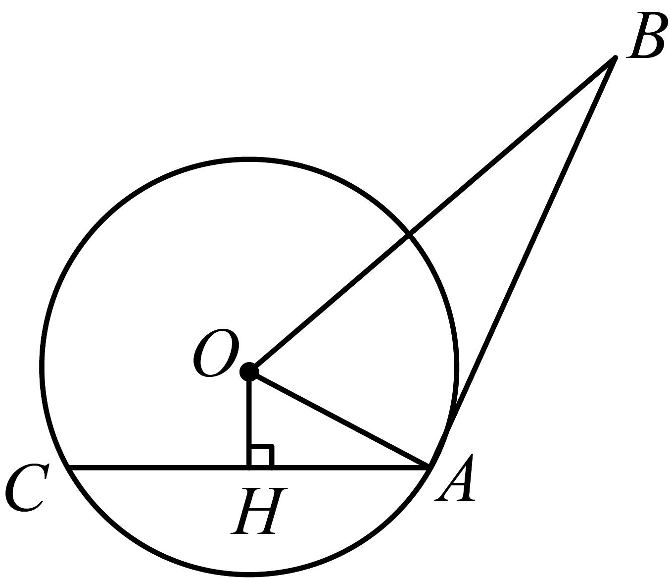 3、如图,是的切线,A为切点,是的弦,过O作于点H.若 , , . 求:(1)、的半径;(2)、的值;
