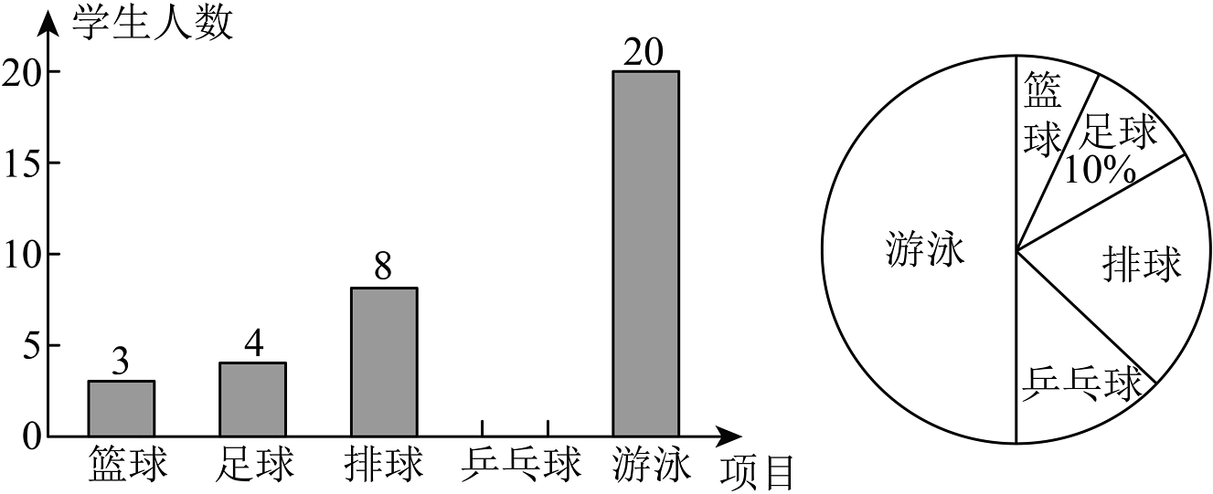 6、某校为提高学生体育运动能力,进一步增强学生的身体素质,现决定开设篮球、足球、排球、乒乓球、游泳5门运动课程.为了解学生需求,学校随机抽取部分学生进行调查(每人限选1门),并将调查结果绘制成如下两幅不完整的统计图.
