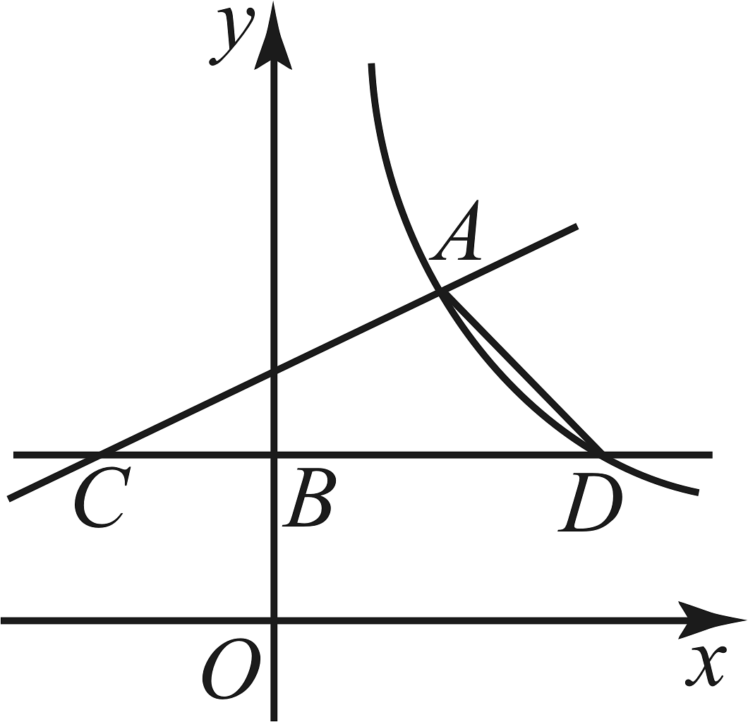 18、如图,在平面直角坐标系中,将函数的图象向上平移3个单位长度,得到一次函数的图象,与反比例函数的图象交于点 . 过点作x轴的平行线分别交与的图象于C,D两点.(1)、求一次函数和反比例函数的表达式;(2)、连接 , 求的面积.