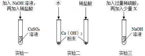 2、如图三个实验均可验证酸与碱能发生反应。(1)、实验一:通过观察稀盐酸与(填名称)发生反应的现象,验证酸与碱能发生反应。(2)、通过两支试管中的现象对比,可以判断稀盐酸与Ca(OH)2能反应,该实验除需控制所加水和稀盐酸的温度、体积相同外,还需控制相同。(3)、实验三中,加入X可验证稀硫酸与碱能发生反应,符合此条件的X可以是下列物质中的____。A、酚酞 B、CuO C、Ba(OH)2