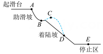 19、跳台滑雪是一项受许多人喜爱的体育运动。某次跳台滑雪比赛中,某运动员的运动轨迹如图所示,该运动员从起跳台出发,以一定的速度滑过A、B点,到C点下落至D点,最终在E点停下(忽略空气阻力),A和B、B和D之间的垂直距离均为h。下列关于运动过程中对该运动员的解释正确的是( )A、A点到B点减少的重力势能等于C点到D点减少的重力势能 B、D点与A点相比,动能增加,势能减少,机械能不变 C、B点的动能可能等于A点的动能,但一定大于C点的动能 D、在C点的动能为零