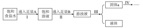写出步骤Ⅲ的名称:;为了提升制“碱”的效率,步骤I和Ⅱ的气体分别是(填“A为NH3 , B为CO2”或“A为CO2 , B为NH3”)。