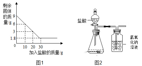 ②乙同学将另一份放于烧杯中,向烧杯中逐渐加入某一浓度的盐酸,反应过程测得剩余固体质量与加入盐酸的质量关系如下图1所示: