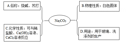 8、小深同学用思维导图梳理了Na2CO3的相关知识,其中描述错误的是( )A、A B、B C、C D、D
