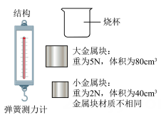 (2)、将小金属块浸没在某种液体时,右边密度计的密度值是 千克/米3 , 则左边对应测力计示数是多少牛?(写出计算过程)(3)、若将小金属块换成大金属块,判断该密度计的量程和精确度将如何改变,并说明理由 -