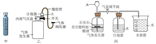 【市场调查】小明发现市场上有如图甲所示的二氧化碳气体补给器出售,该补给器连接上气体细化器后就可向水族箱的水中补充二氧化碳气体,其结构示意图如图乙所示。