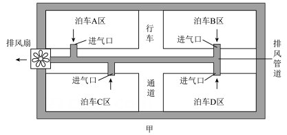 19、某地下车库安装了如图甲所示的管道式新风系统,该系统内包含有排风机和管道配件,通过排风扇将不同停车区的空气经管道排出室外。为了研究管道进气口的气体流速与管道长度(进气口与排风扇之间的距离)的关系,项目化小组设计了如图乙实验装置,并进行了如下实验: