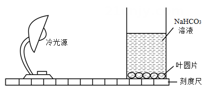 步骤3:取4盏相同规格的冷光源(不会引起温度变化),将盛叶圆片的4 只烧杯置于距光源不同远近的位置,如图所示。