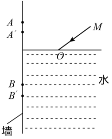 15、小云用一支新买的激光笔照射水面,在竖直白墙上出现了两个红色亮点 A 和B,如图所示,保持入射点O的位置不变,欲使光点A 下移至A'处,应使入射光线 MO 绕着点O 沿(填“顺时针”或“逆时针”,下同)方向转动;保持入射点O的位置不变,欲使光点 B 下移至B'处,应使入射光线MO绕着点 O 沿方向转动。