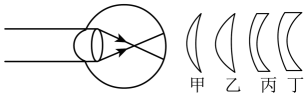 (1)、正常眼睛观察物体时,在视网膜上成的像的性质是 ____;A、正立、放大的实像 B、正立、缩小的实像 C、倒立、缩小的实像 D、倒立、放大的实像(2)、根据上文,你认为人的正常眼睛的观察范围是 ____;A、0~10cm B、10cm~25cm C、25cm~无限远 D、10cm~无限远(3)、如题图所示是小明的眼睛看物体时的成像情况,则他的眼病是 , 需要用 透镜来矫正。另一同学小芳所戴眼镜镜片的度数是﹣500度,则该透镜焦度为 m﹣1 , 焦距为 m。(4)、小明仔细观察镜片的形状和厚度,把四种镜片的截面图画成了图中甲、乙、丙、丁所示的形状,则可以知道:远视眼配带度数较大的是 。 -