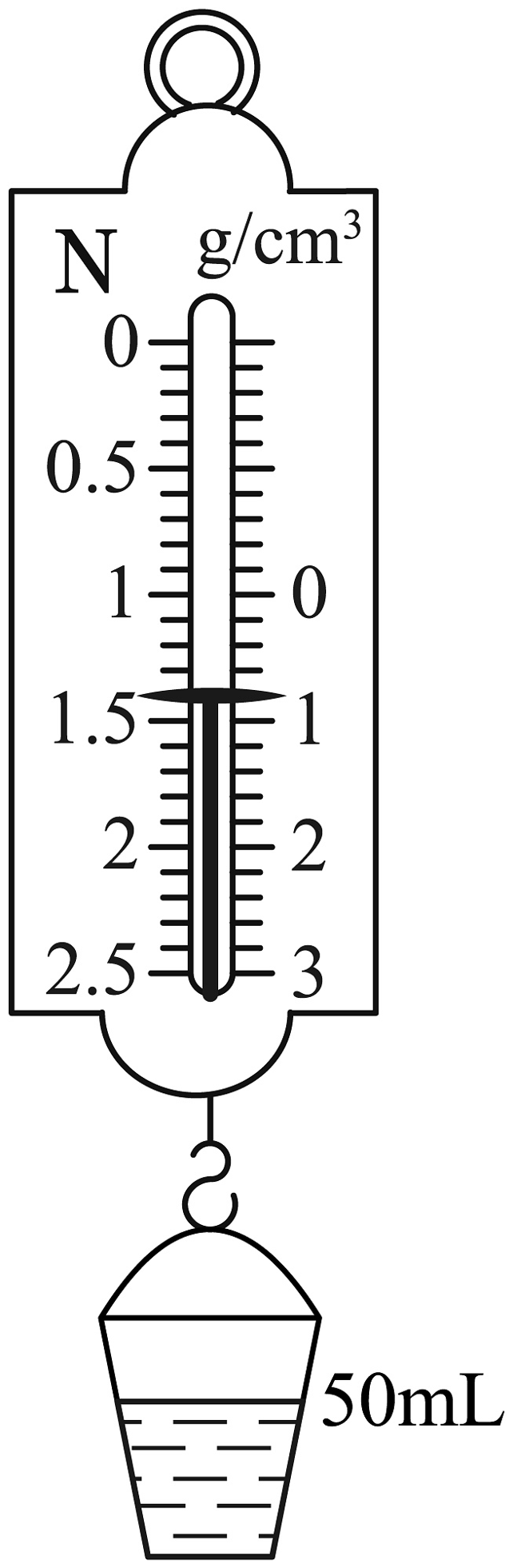 ②加入50mL水,示数稳定后,将此时对应的弹簧测力计指针处的刻度标记为g/cm3;