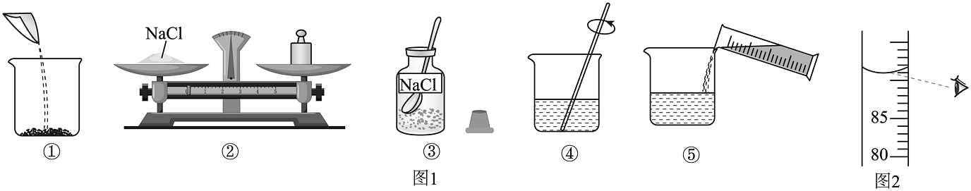 (3)某同学量取水的体积操作如图2所示,会导致配制的溶液中溶质的质量分数。(填“偏大”、“偏小”或“不变”)。