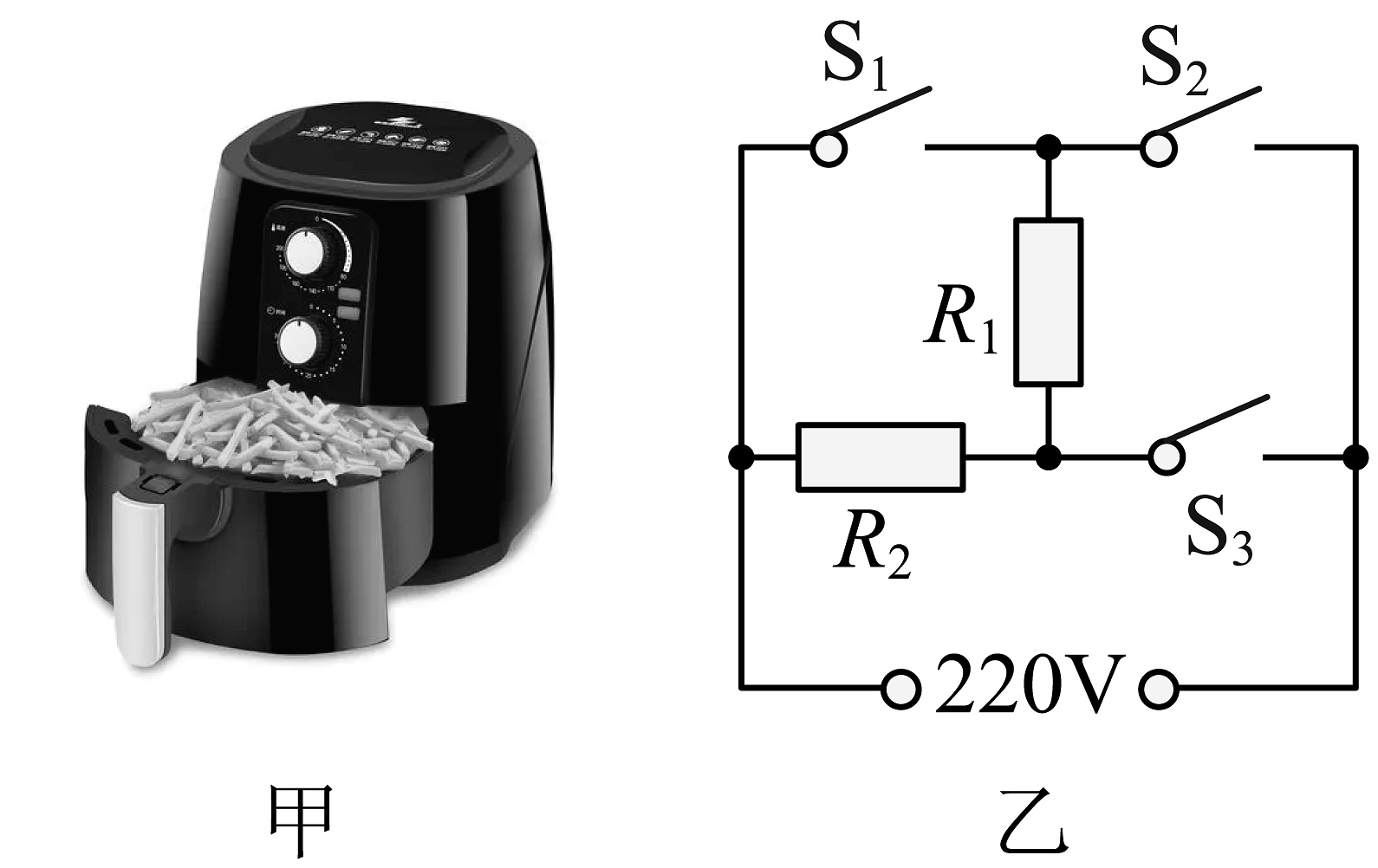 5、如图甲,空气炸锅是一种常用的家庭电器。其内部部分电路简化为如图乙所示:定值电阻 , 通过控制开关S1、S2、S3可实现低温、中温、高温三个挡位的调节。