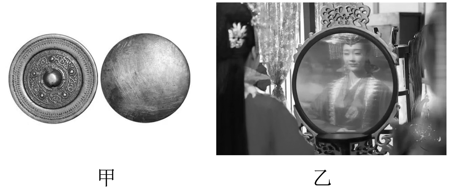 (2)若将其镜面打磨抛光,女子便能通过镜面呈现清晰的像(图乙),该像在(填“镜面前”“镜面上”或“镜面后”)。