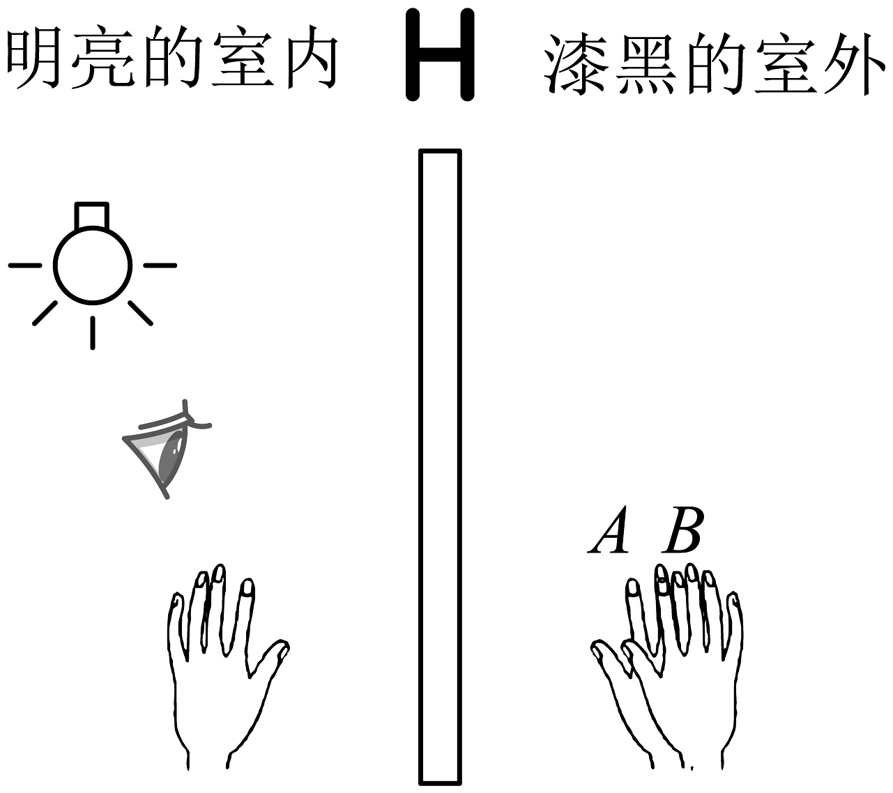19、如图所示,H为一块厚厚的玻璃,左侧为明亮的室内,右侧为漆黑的室外。现室内有人将一只手靠近H,发现室外呈现这只手的“重影”(AB两个像)。下列说法正确的是( )A、A是光在玻璃左表面上反射一次而成;B是光在玻璃右表面上折射一次而成 B、A是光在玻璃右表面上反射一次而成;B是光在玻璃左表面上反射一次而成 C、A是光在玻璃左表面上反射一次而成;B是光在空气与玻璃的左界面发生折射和光在玻璃的右表面发生反射共同引起 D、A是光在空气与玻璃的左界面发生折射和光在玻璃的右表面发生反射共同引起;B是光在玻璃左表面上反射一次而成