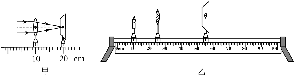 (1)如图甲所示,平行光正对凸透镜照射,光屏上出现一个最小最亮的光斑,则小明所用凸透镜的焦距为厘米;