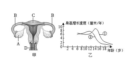 (2)图乙为人体身高增长速度与年龄的曲线图,图中表示男孩发育曲线的是(选填图中序号).