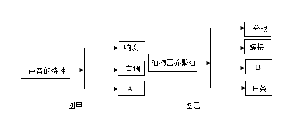 (2)图乙为植物常见的营养繁殖类型的概念图,其中B处是 .