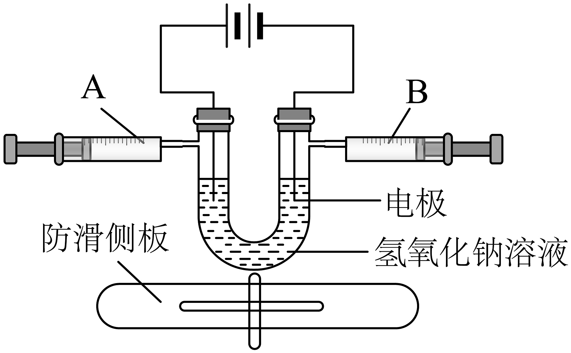 (1)A管中产生的气体和B管中产生的气体的体积比约为。拔下注射器,将带火星的木条放在A管口,推动活塞,观察到 , 说明A管中产生的气体为氧气。