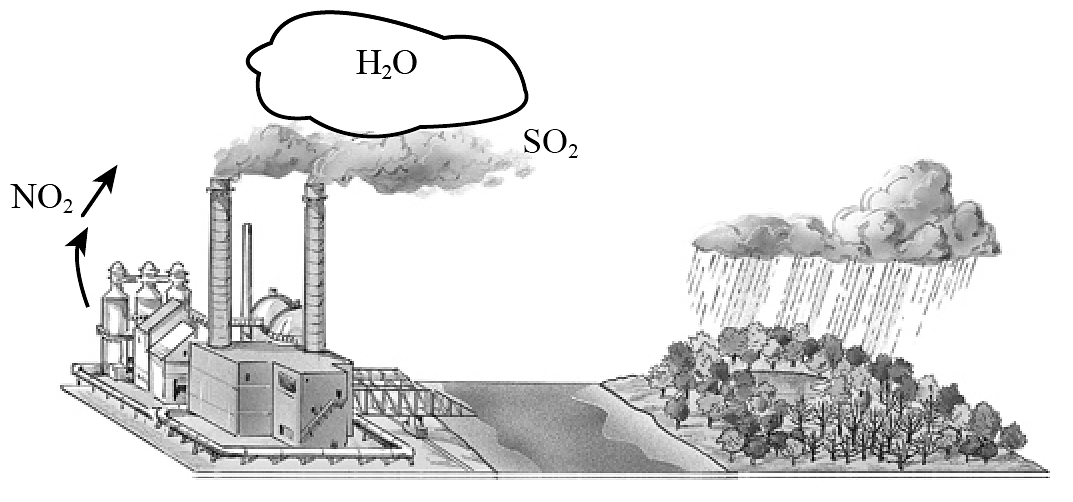 17、如图,随着工业技术的发展,化石能源被大量使用。释放的气体进入大气,从而引起酸雨现象。1982年6月,国际环境会议上正式将pH小于5.6的酸性降水定为酸雨。