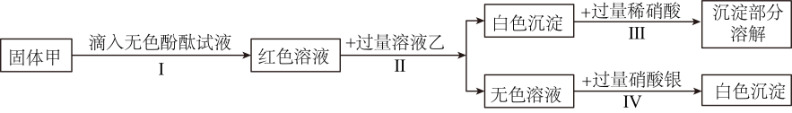 14、某白色粉末状固体甲,可能含有Na2SO4、Ba(OH)2、Na2CO3、NaCl;某溶液乙可能含有Ba(NO3)2、NaCl。为探究它们的成分,科学小组开展了如图所示的实验。请回答下列问题。(1)、步骤Ⅱ得到的沉淀的成分是。(2)、固体甲中一定没有的物质有。(3)、要检验甲中可能存在的物质是否存在,需补充的实验操作是 , 观察现象。